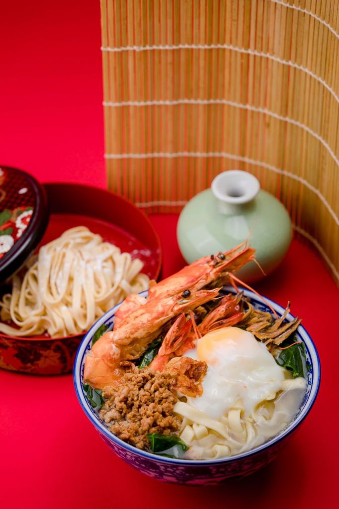 尤其超推荐我们家的三鲜板面!里面有超大只的老虎虾,啦啦和鱼片,包你吃到超满足!😋