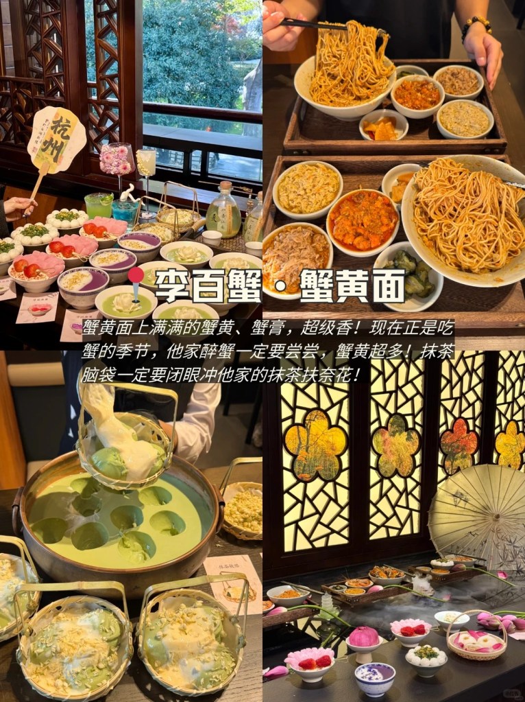 蟹黄面真的给到不手软,满满蟹黄+蟹膏,拌一口香到上头!现在正是吃蟹的季节,他家的醉蟹一定要点,蟹黄多到离谱~抹茶控记得闭眼冲抹茶扶奈花,完全不踩雷!