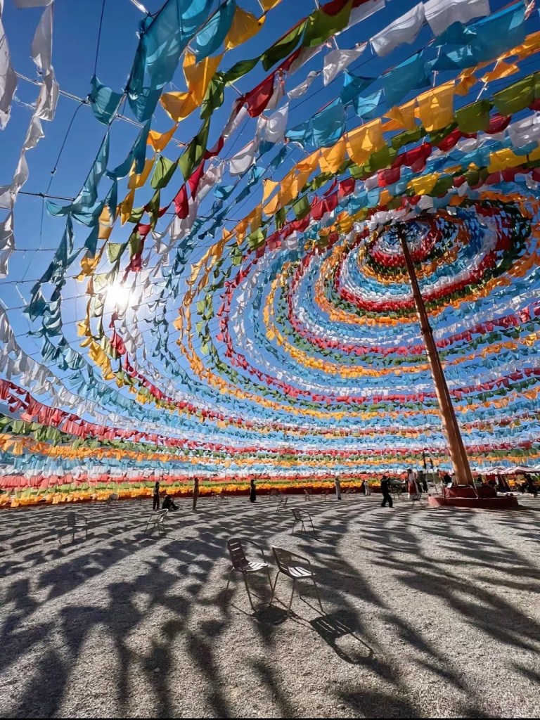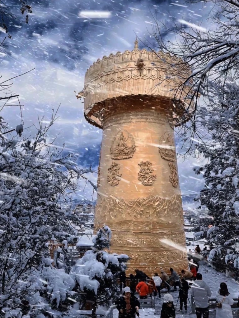 城中矗立着世界最大的转经筒,转动时不妨许下心愿