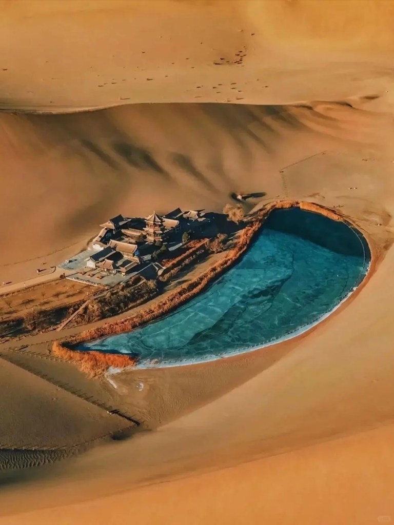 沙与泉在这里奇迹般共存。一侧是能“歌唱”的鸣沙山,一侧是形如弯月、千年不枯的月牙泉。金色沙海与碧水相依,构成西北最浪漫、也最不可思议的风景之一。