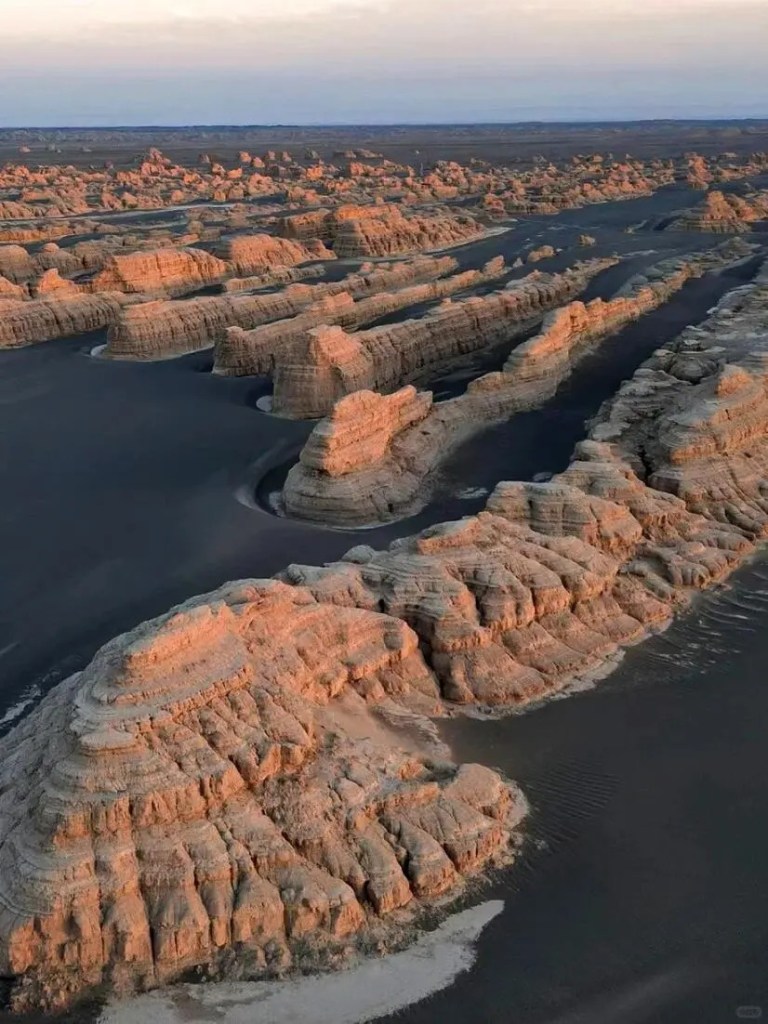 这是典型的风蚀地貌奇观。常年大风呼啸,风声穿行其间,犹如低沉嘶吼,因此得名“魔鬼城”。形态诡谲的土丘在戈壁上延展,日出日落时分,光影交错,仿佛置身异世界。