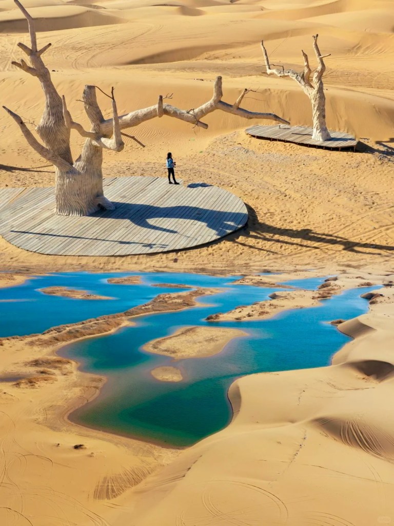 沙漠与湖泊共生的奇景,