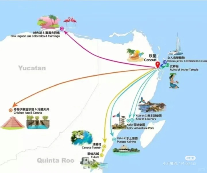 **坎昆(Cancún)**位于墨西哥尤卡坦半岛东北端,濒临加勒比海,是闻名全球的海滨度假胜地。这里阳光充沛、海水澄澈、沙滩细腻洁白,年平均气温约27.5℃。