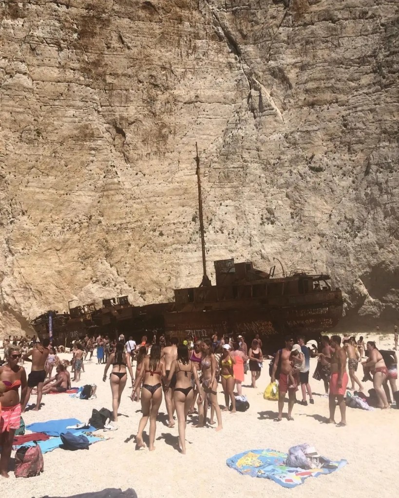 标志性画面:白沙滩+锈船+悬崖