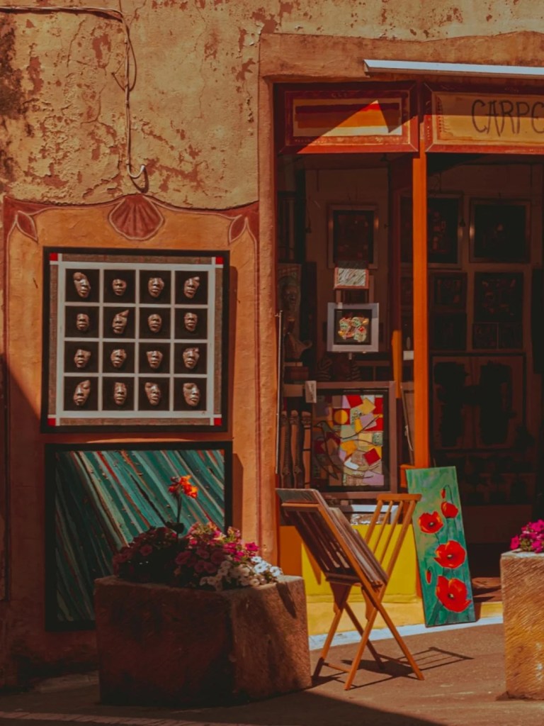 整座小镇像是被大地的颜料浸染,从明亮的金色、深沉的砖红,到柔和的赭石与橘褐色交织