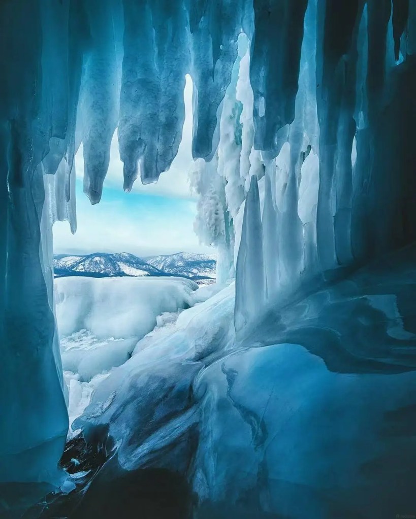 当你站在冰封湖面上,脚下的蓝冰和气泡,就像整个宇宙被封存在透明水晶里![]()